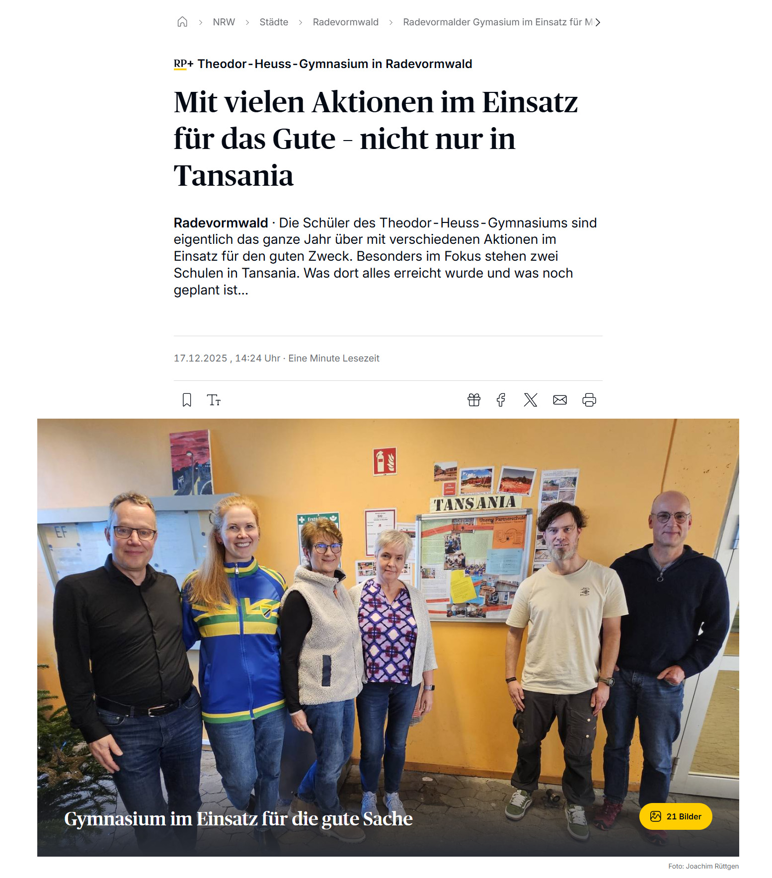 Wir sammeln Spenden für unsere Patenschule in Tansania: