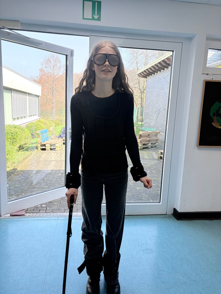 Zu Beginn stellte Frau Haupt-Schulte den Sozialführerschein vor und erklärte, wie die Anmeldung funktioniert und welche Einrichtungen dafür zur Auswahl stehen. Ziel des Projekts ist es, das ehrenamtliche Engagement junger Menschen direkt vor Ort in Rade zu stärken. Dabei erhalten die Jugendlichen die Möglichkeit, Orte wie Kindertagesstätten, Altenheime oder das örtliche Krankenhaus kennenzulernen und dort freiwillig mitzuarbeiten. Danach wurde es praktisch: Die Schülerinnen und Schüler konnten verschiedene Stationen ausprobieren, um selbst zu erleben, wie sich bestimmte altersbedingte Einschränkungen wie reduzierte Mobilität, gemindertes Sehvermögen oder zunehmende Gelenksteifigkeit im Alltag anfühlen. Besonders spannend war dabei der sogenannte Altersanzug. Mit Gewichten, speziellen Brillen und anderen Hilfsmitteln wurde schnell deutlich, dass selbst einfache Bewegungen plötzlich viel schwieriger werden können. Dabei waren auch Teamarbeit und Vertrauen wichtig, denn wer zum Beispiel mit eingeschränkter Sicht unterwegs war, musste sich von anderen begleiten lassen. Der Sozialführerschein bietet den Jugendlichen die Möglichkeit, für einige Stunden freiwillig in sozialen Einrichtungen mitzuhelfen und dabei neue Erfahrungen zu sammeln. Insgesamt umfasst das Engagement einen zeitlichen Umfang von zwölf Stunden, in denen sie einen Einblick in soziale Berufe und den Alltag anderer Menschen bekommen können. Doch nicht nur die Einrichtungen und Menschen in Rade profitieren von der Unterstützung durch die Jugendlichen – auch die Schülerinnen und Schüler selbst haben etwas davon: Nach erfolgreicher Teilnahme erhalten sie ein Zertifikat, das während einer kleinen Feierstunde durch den Landrat überreicht wird. Damit soll ihr Engagement gewürdigt und gleichzeitig dokumentiert werden. Außerdem kann das Zertifikat auch bei späteren Bewerbungen ein echter Pluspunkt sein, da es zukünftigen Ausbildungsbetrieben oder Schulen zeigt, dass die jungen Menschen Verantwortung übernehmen, Teamfähigkeit mitbringen und sich freiwillig engagieren. Der Sozialführerschein verbindet somit praktische Erfahrung mit sozialem Engagement und bietet den Jugendlichen eine wertvolle Orientierung für ihre persönliche und berufliche Zukunft.
