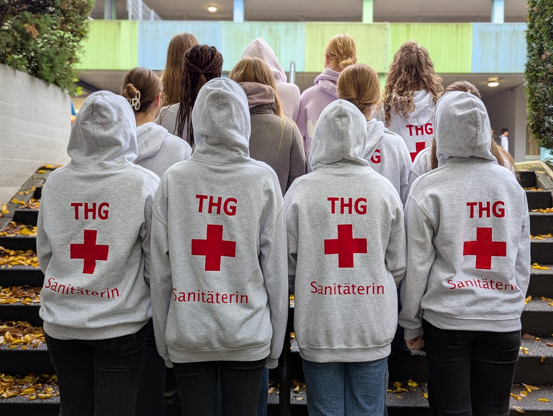 Keine Sorge – Hilfe ist immer vor Ort! Der Schulsanitätsdienst steht bereit, um bei allen möglichen Verletzungen zu helfen – von Prellungen und Schwindel bis hin zu blutenden Nasen. Jedes Mitglied unseres Teams hat eine Ausbildung zum Ersthelfer absolviert und ist somit bestens qualifiziert, Mitschüler*innen in vielen Situationen zu unterstützen. Doch nicht nur die Sanitäterinnen und Sanitäter selbst werden regelmäßig geschult – auch alle anderen Schüler*innen des Theodor-Heuss-Gymnasiums profitieren davon. Etwa alle zwei Jahre wird ein Erste-Hilfe-Kurs angeboten, der von Frau Keller, der Leiterin des Schulsanitätsdienstes, organisiert wird. Frau Keller übernahm im Jahr 2018 die Leitung der Sanitäts-AG. Wenn sich ein Schüler oder eine Schülerin verletzt, kann die betroffene Person im Sanitätsraum behandelt werden. Dort stehen verschiedene medizinische Materialien wie Verbände, Pflaster und Kühlpacks bereit. Damit bei Verletzungen immer Sanitäter*innen erreichbar sind, gibt es einen Schichtplan, in dem alle Mitglieder eingetragen sind. Die Sanitäts-AG trifft sich ein Mal in der Woche, um organisatorische Dinge zu besprechen. Dabei geht es zum Beispiel um vergangene Einsätze, aktuelle Probleme oder anstehende Veranstaltungen. Unsere Sanitäter*innen helfen nämlich nicht nur im Schulalltag, sondern auch bei Sportevents wie dem Sponsorenlauf, dem Nikolausturnier oder anderen Schulveranstaltungen. Dort stehen sie ihren Mitschülerinnen zur Seite und leisten Erste Hilfe, wenn jemand sich verletzt.